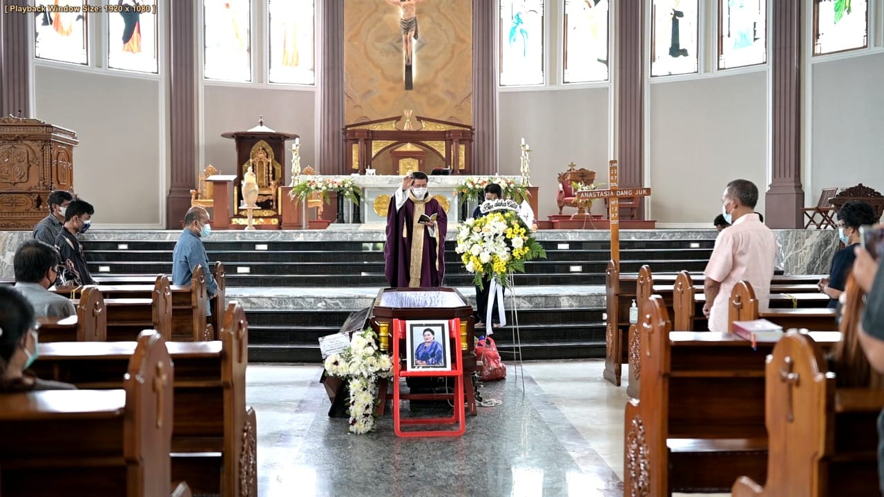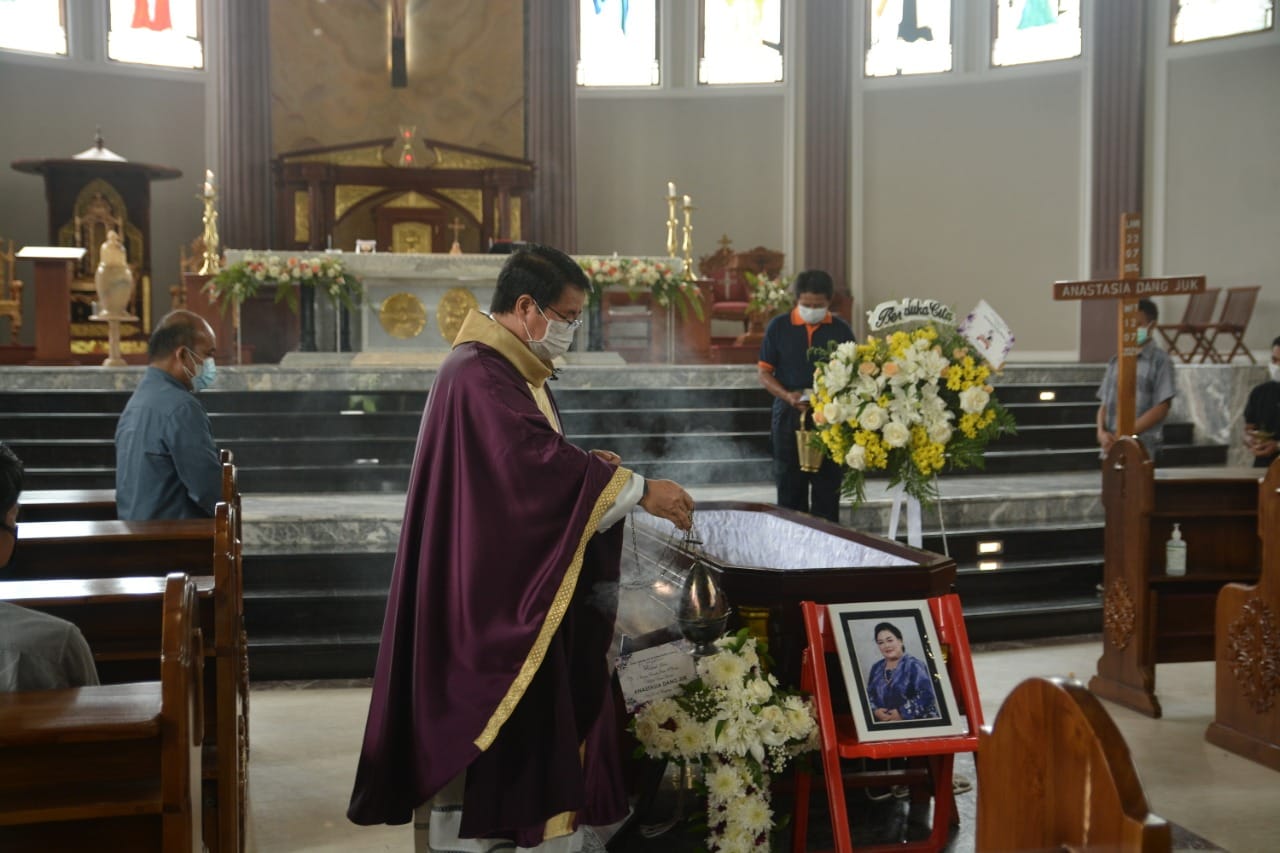 Sebelum dimakamkan, mendiang disemayamkan di rumah duka di Perum Karpotek blok FF nomor 1, Sungai Kunjang Samarinda setelah itu dilaksanakan misa pelepasan jenazah (Requiem) di Gereja Katedral Santa Maria penolong Abadi Samarinda yang dipimpin oleh Pastor Moses Komela Avan, PR.