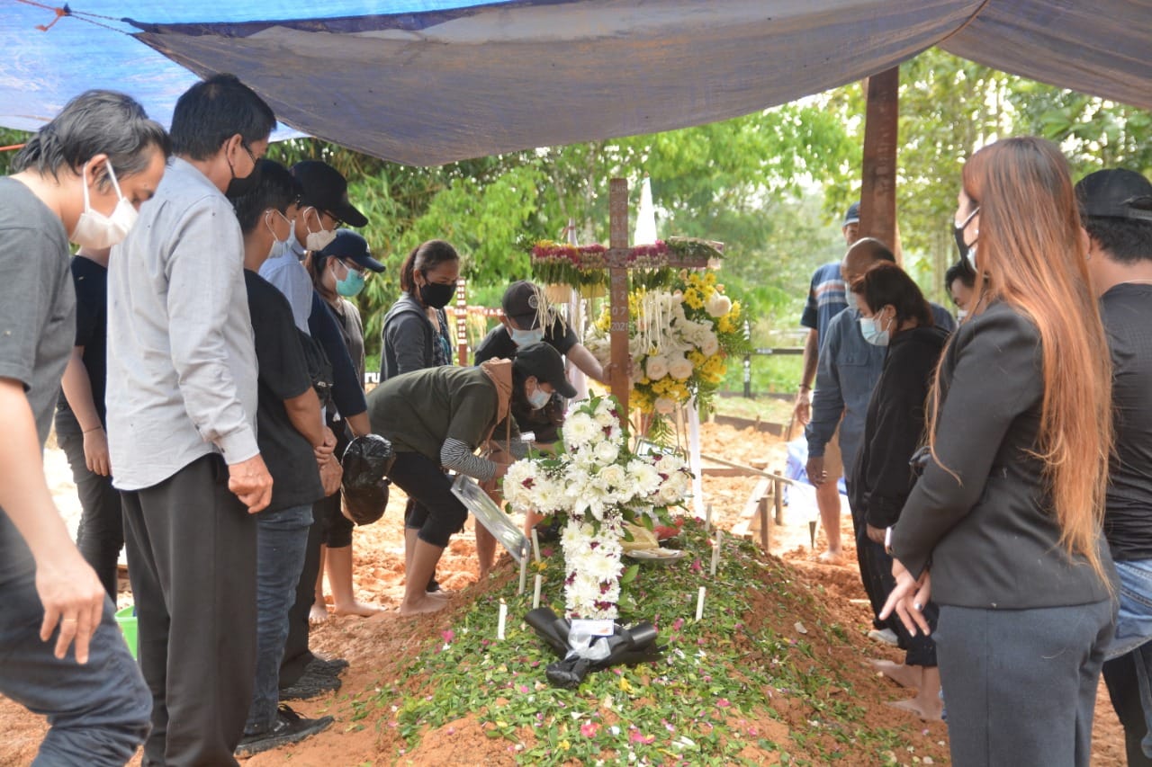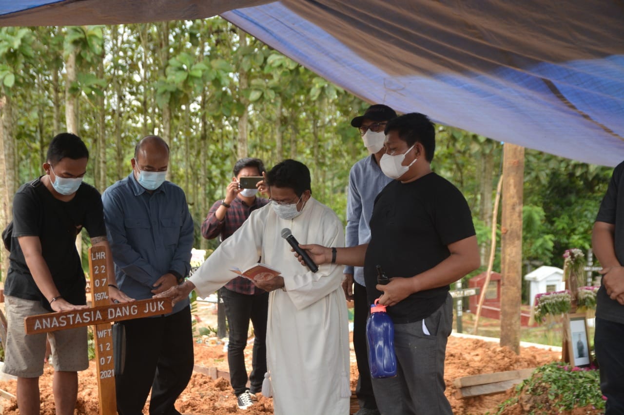 SAMARINDA – Abu Jenazah Mendiang Ibu Anastasia Dang Juk Istri Wakil Bupati Mahakam Ulu (Mahulu) Drs. Yohanes Avun, M.Si, dimakamkan di Taman Makam Katolik (TMK) Sungai Siring jalan Poros Samarinda- Bontang, Rabu (14/07).
