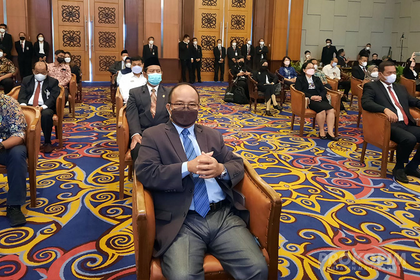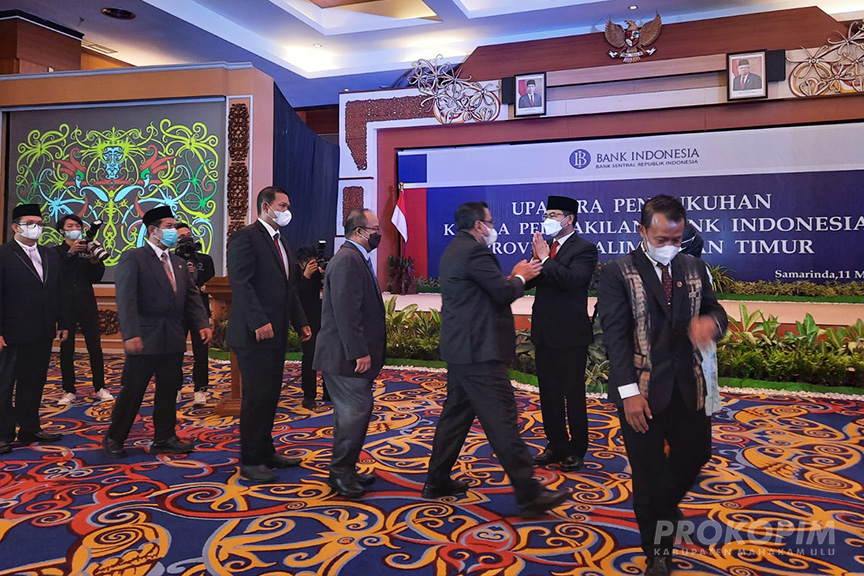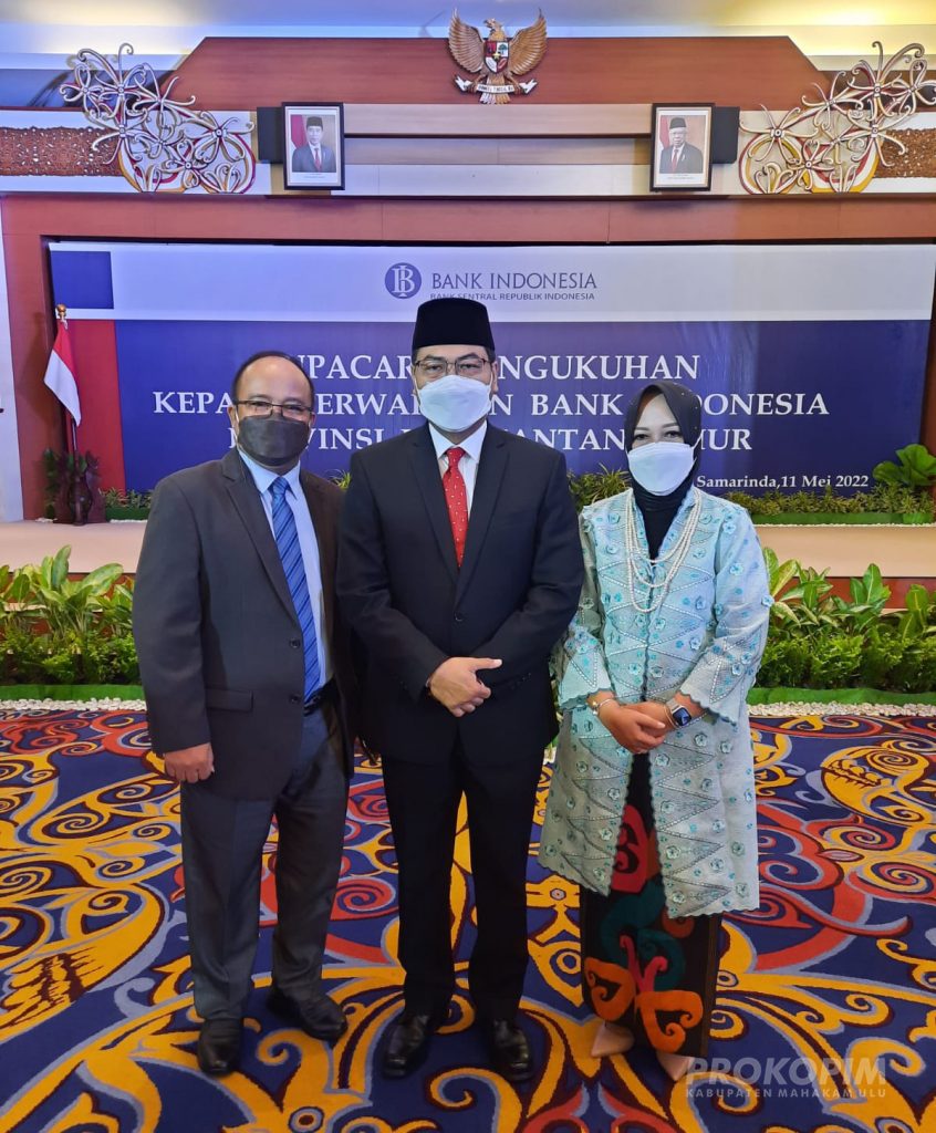 SAMARINDA – Bupati Mahakam Ulu (Mahulu) Bonifasius Belawan Geh, SH., ME yang diwakili oleh Asisten Bidang Perekonomian dan Pembangunan (Asisten II) E.Tek Hen Yohanes,S.Pd menghadiri Pengukuhan Kepala Perwakilan Bank Indonesia (BI) Kalimantan Timur (Kaltim) Ricky Perdana Gozali oleh Deputi Senior Bank Indonesia Destry Damayanti, di Ruang Maratua Kantor Perwakilan Bank Indonesia. Rabu (11/5/22)