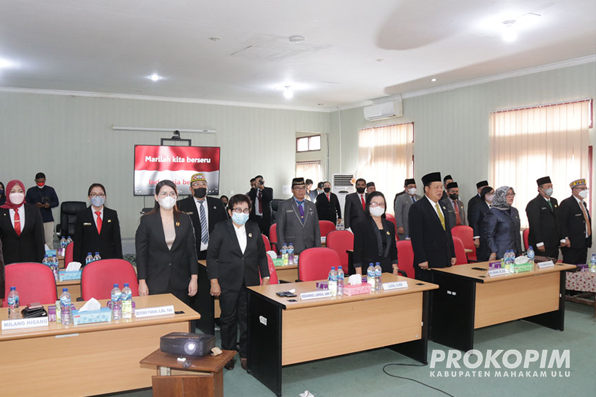 UJOH BILANG – Bupati Mahakam Ulu (Mahulu) Bonifasius Belawan Geh S.H., ME Bersama Wakil Bupati Mahulu Drs. Yohanes Avun, M.SI menghadiri Rapat Paripurna DPRD Mahulu dalam agenda mendengarkan Pidato Kenegaraan Presiden Republik Indonesia dalam rangka Hari Ulang Tahun (HUT) ke -77 Kemerdekaan Republik Indonesia, Selasa (16/08/2022).