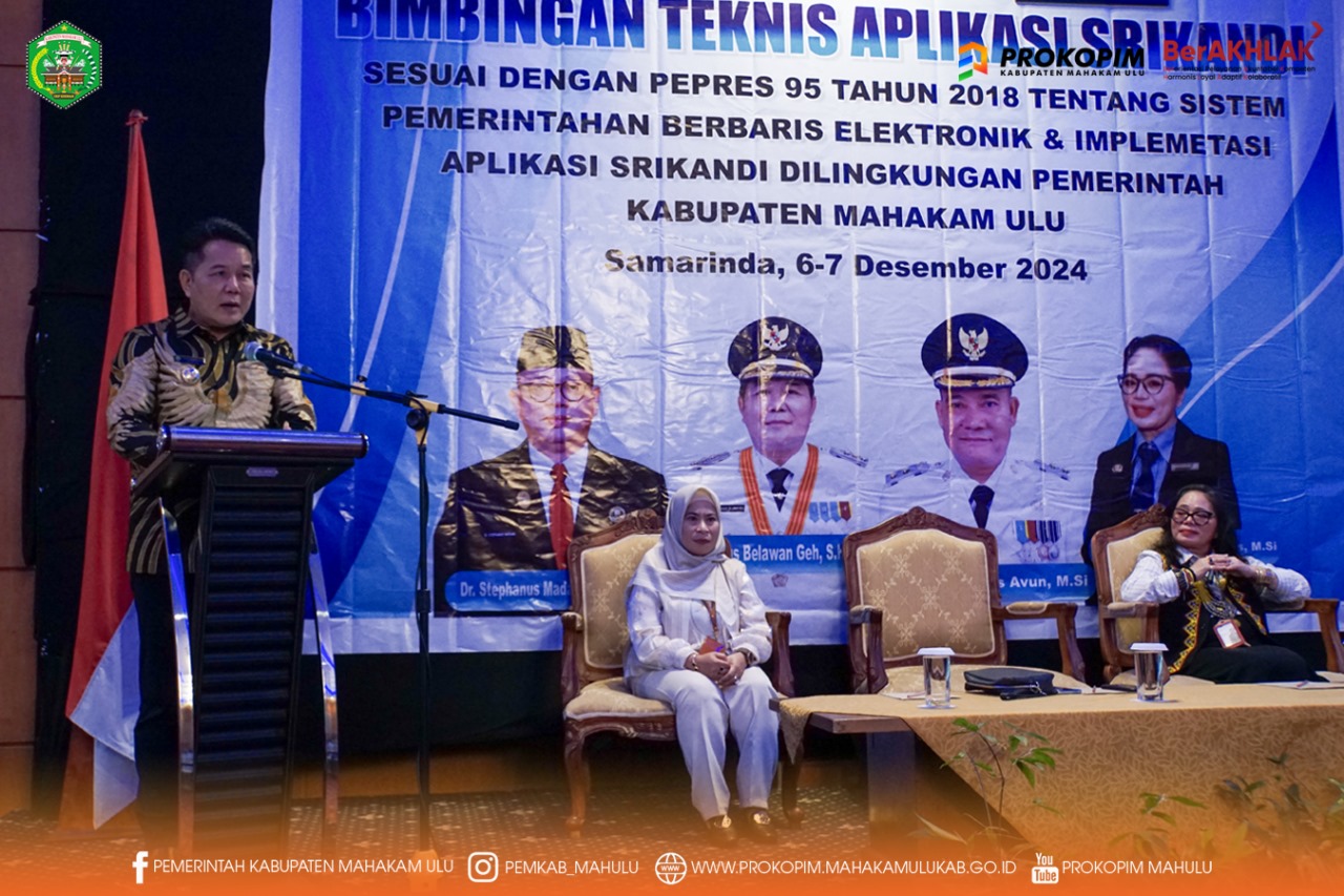 Press Release : SAMARINDA – Bupati Mahakam Ulu (Mahulu), Dr. Bonifasius Belawan Geh, S.H., M.E., resmi membuka Bimbingan Teknis (Bimtek) Aplikasi SRIKANDI, yang bertujuan untuk mendukung implementasi Peraturan Presiden No. 95 Tahun 2018 tentang Sistem Pemerintahan Berbasis Elektronik (SPBE), di Hotel Puri Senyiur Samarinda. Jumat (06/12/2024)