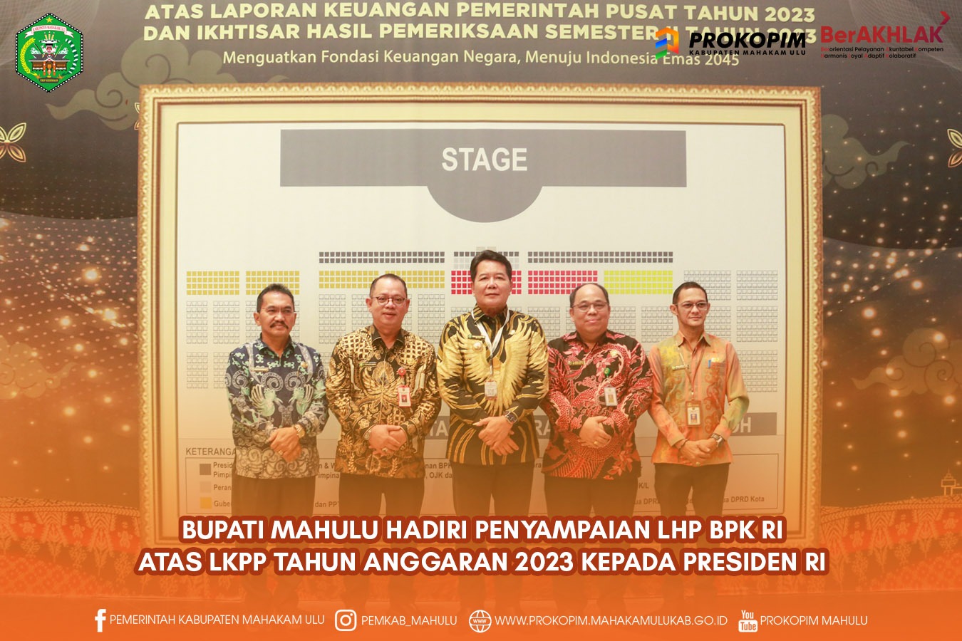 Jakarta – Bupati Mahakam Ulu (Mahulu) Dr. Bonifasius Belawan Geh, S.H.,M.E., menghadiri acara Penyampaian hasil Pemeriksaan Badan Pengelolaan Keuangan (BPK) Republik Indonesia (RI) atas Penyampaian Laporan Hasil Pemeriksaan (LHP) atas Laporan Keuangan Pemerintah Pusat (LKPP) Tahun Anggaran 2023 dan Ikhtisar Hasil Pemeriksaan Semester II Tahun 2023., di Cendrawasih Room – Jakarta Convention Center (JCC), Jl. Gatot Subroto No.01 Jakarta Pusat. Senin ( 08/07/24)