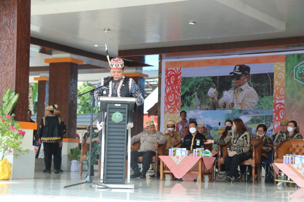 UJOH BILANG – Bupati Mahakam Ulu (Mahulu) Bonifasius Belawan Geh,SH.,ME Melaunching Produksi Beras Lokal Hasil Panen Tahun 2022, Program Ketahanan pangan Kabupaten Mahulu Menuju Masyarakat Adil dan Sejahtera 2022, di Alun-alun Ujoh Bilang. Kamis (9/6/21)