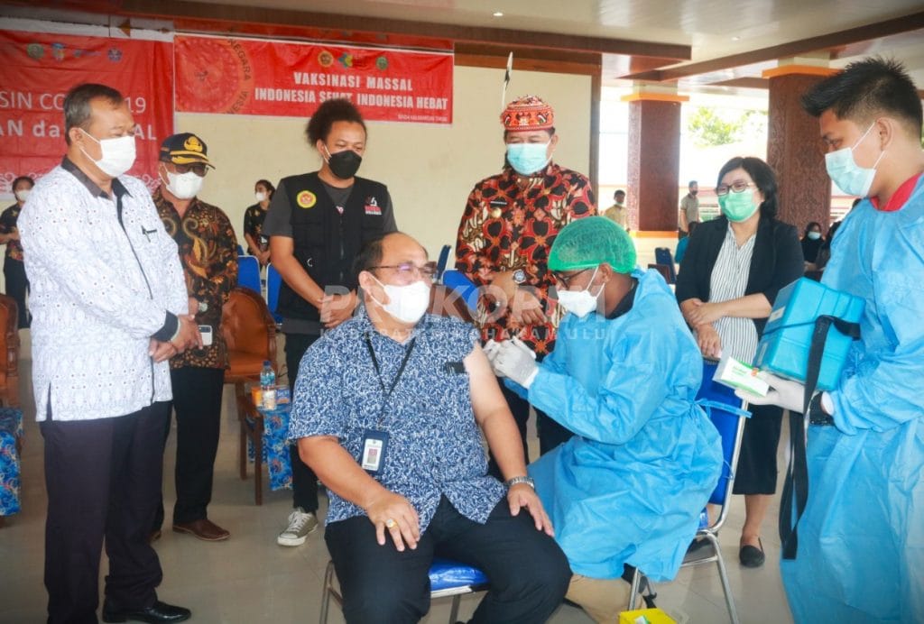 MAHAKAM ULU – Bupati Mahakam Ulu (Mahulu) Bonifasius Belawan Geh SH., ME membuka acara vaksinasi massal dosis III (Booster) dalam rangka mendukung Indonesia pulih dalam keadaan yang sehat di Alun- alun Ibukota Ujoh Bilang pada Kamis (13/01/22)