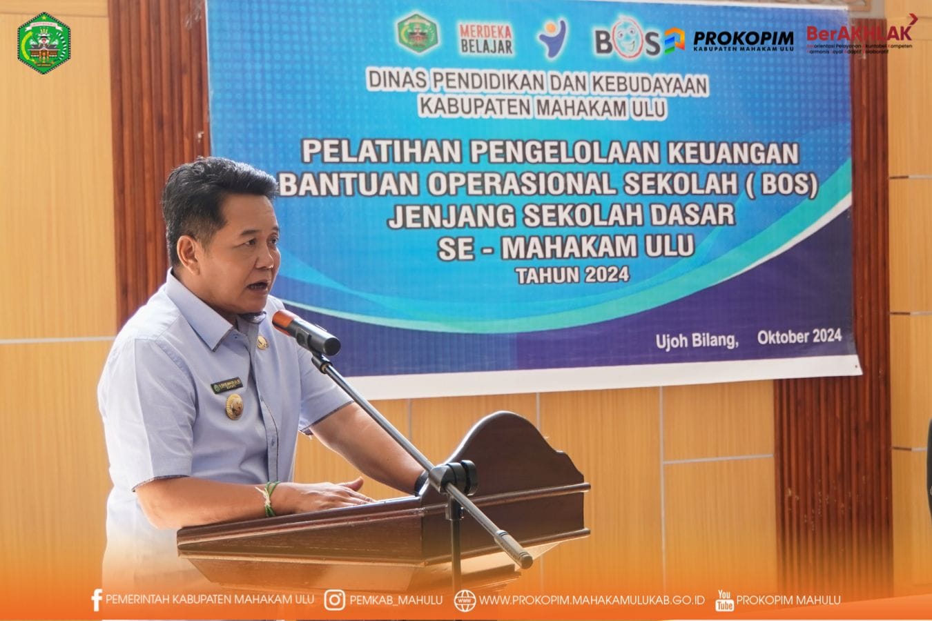Press Release : Ujoh Bilang – Bupati Mahakam Ulu (Mahulu) Dr. Bonifasius Belawan Geh, S.H., M.E., menyerahkan secara simbolis sarana dan prasarana penunjang pendidikan bagi sekolah – sekolah PAUD, SD, dan SMP yang terdampak banjir pada bulan Mei Tahun 2024, di Ruang Rapat Kantor Bappelitbangda. Jumat (25/10/24)