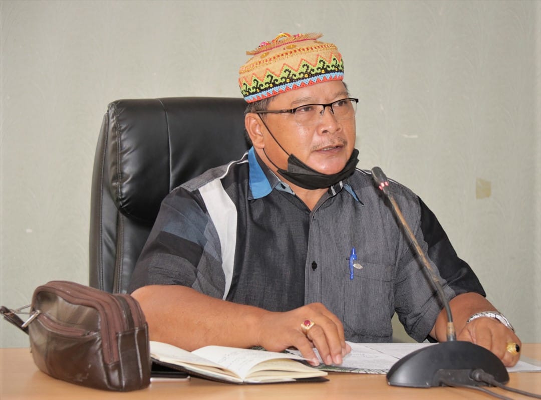 UJOH BILANG – Bupati Mahulu Bonifasius Belawan Geh, SH., M.E pimpin Rapat Koordinasi Pembangunan Jembatan Sungai Ratah yang diikuti orang nomor satu di Mahulu melalui Virtual di rumah dinas Bupati, Kamis (16/9/2021).