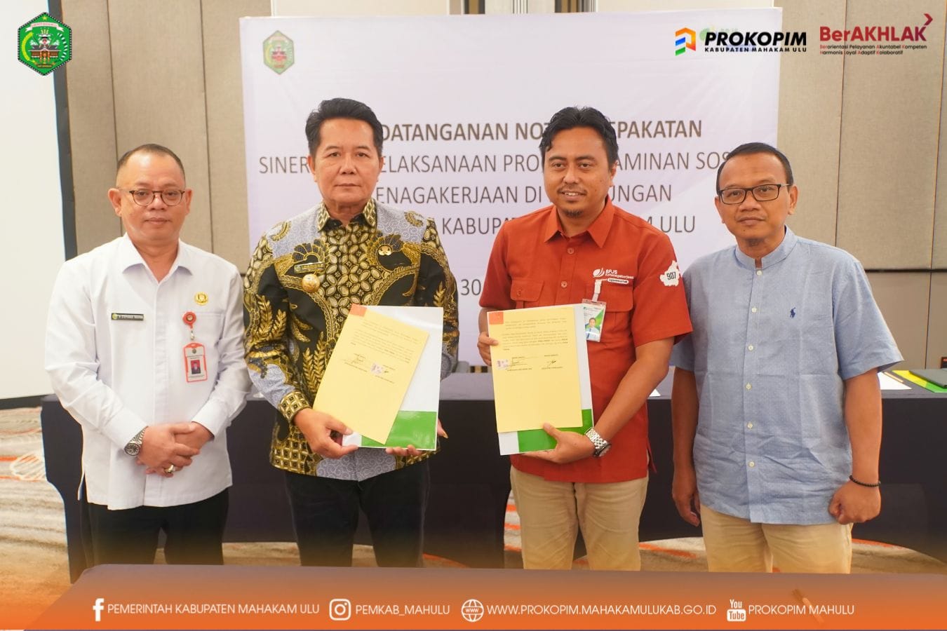 Press Release : Samarinda – Sebagai wujud sinergi dan kolaborasi agar dapat berkontribusi secara nyata dalam percepatan pembangunan di Kabupaten Mahakam ulu (Mahulu) khususnya dalam program jaminan sosial ketenagakerjaan, Bupati Mahakam Ulu (Mahulu) Dr. Bonifasius Belawan Geh, S.H., M.E., tandatangani Nota Kesepakatan Sinergitas Pelaksanaan Program Jaminan Sosial Ketenagakerjaan bersama dengan Badan Penyelenggara Jaminan Sosial (BPJS), di Crystal Grand Ballroom Lt.7 Hotel Mercure Samarinda. Rabu (30/10/24)