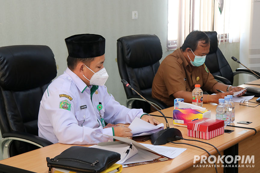 UJOH BILANG – Pemerintah Kabupaten Mahakam Ulu (Pemkab Mahulu) Bersama Kementerian Agama (Kemenag) Kabupaten Mahulu menggelar Rapat Koordinasi (Rakor) persiapan pemberangkatan Jemaah Calon Haji (JCH) Perdana kelompok terbang (kloter) Mahulu tahun 1443 H/ 2022 M, yang digelar di Ruang Rapat Bappelitbangda, Selasa (7/6).