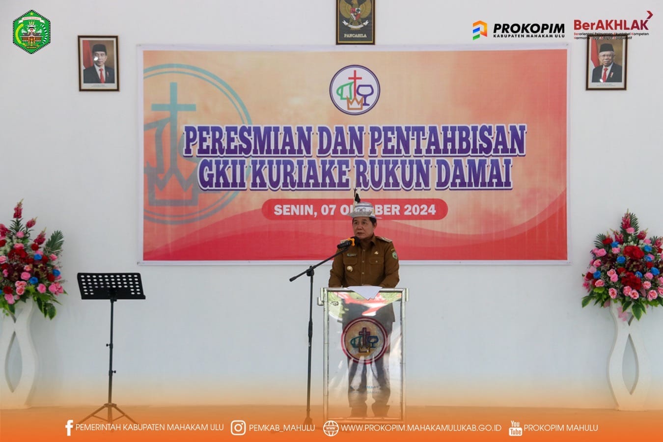 Pesan tersebut disampaikan Bupati Dr. Bonifasius Belawan Geh, S.H., M.E., pada acara peresmian Gereja Kemah Injil Indonesia (GKII) Kuriake Kampung Rukun Damai. Senin (07/10/24)