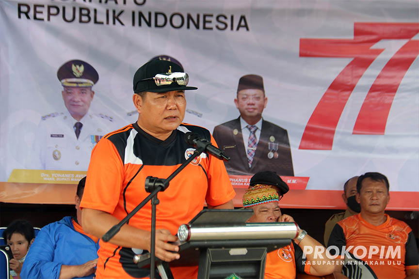Dalam sambutannya, Bupati Mahulu berharap kegiatan tersebut berjalan dengan lancar dan tetap menjunjung tinggi sportifitas. “Pada hari ini kita melakukan kegiatan olahraga untuk memeriahkan hari kemerdekaan kita yang ke 77 dan saya berharap kegiatan ini dapat berjalan dengan lancar dan sukses tanpa di nodai dengan hal-hal yang tidak baik, salah satu contoh nya adalah membuat keributan,” jelasnya