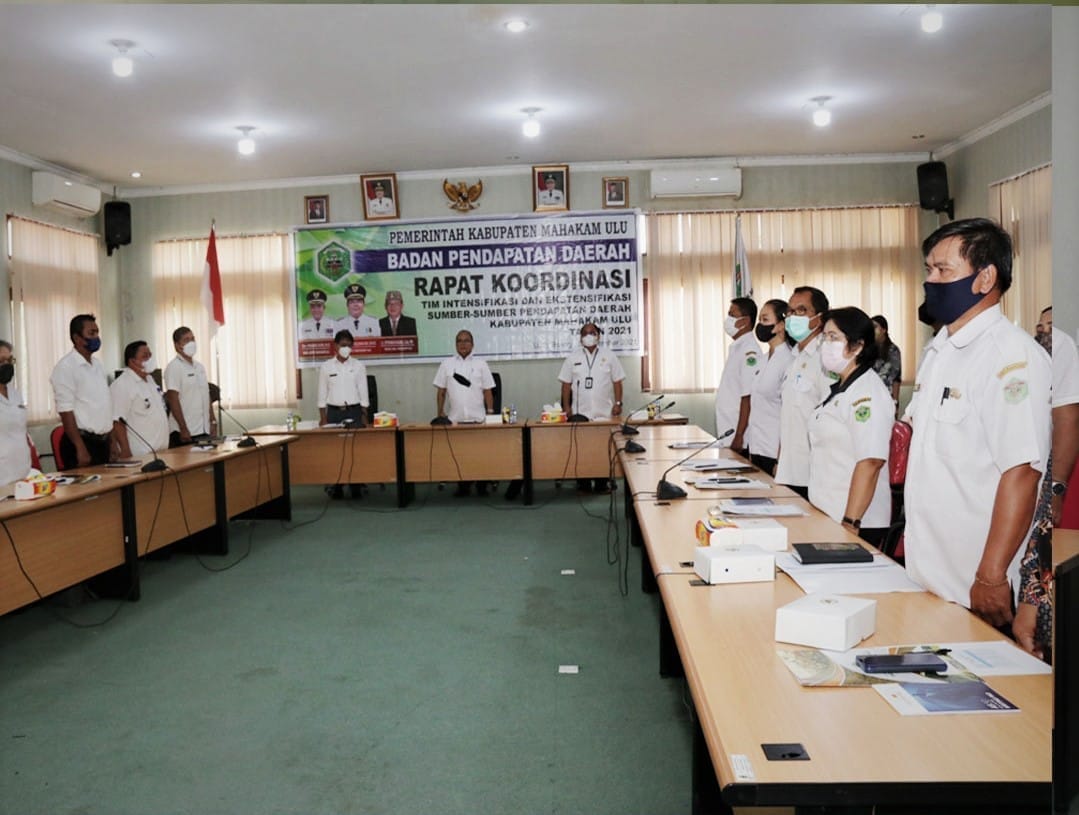 UJOH BILANG – Bupati Mahakam Ulu (Mahulu) Bonifasius Belawan Geh, SH.,ME yang diwakili Asisten Bidang Perekonomian dan Pembangunan Yohanes E Tek Hen, S.Pd membuka Rapat Koordinasi Tim Intensifikasi dan Ekstensifikasi Sumber-sumber Pendapatan Daerah, di Ruang Rapat Bappelitbangda, Rabu (8/12).