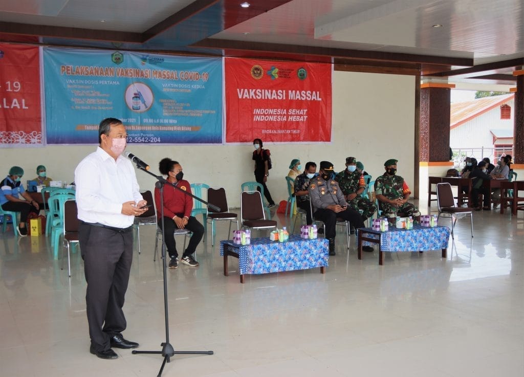 Pesan ini disampaikan Bupati Bonifasius Belawan Geh, S.H.,M.E pada kegiatan vaksinasi massal Coronavirus Disease (Covid-19) Dosis I dan Dosis II bekerjasama dengan Badan Intelijen Negara Daerah Kalimantan Timur (Binda Kaltim) yang dilaksanakan di Tribun Lapangan Ujoh Bilang. Senin (06/12/21)