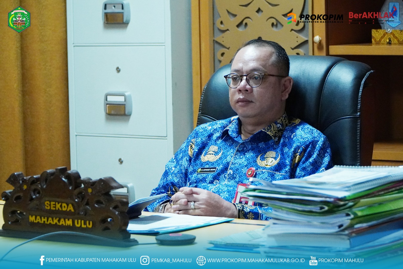 Ujoh Bilang – Bupati Mahakam Ulu (Mahulu) Dr. Bonifasius Belawan Geh, S.H., M.E., dalam kesempatan ini diwakili Sekretaris Daerah (Sekda) Mahulu Dr. Stephanus Madang, S.Sos., M.M. mengikuti secara daring (Video Conference) Rapat Koordinasi Penyelenggaraan Pemerintahan Daerah dirangkaikan dengan Penandatanganan Nota Kesepahaman tentang Sinergi Tugas dan Fungsi Di Bidang Agraria/Pertanahan, Pemerintahan Dalam Negeri, Kehutanan, Transmigrasi dan Informasi Geospasial, serta Pemeriksaan Kesehatan Gratis dan Implementasi Pembangunan 3 Juta Rumah.