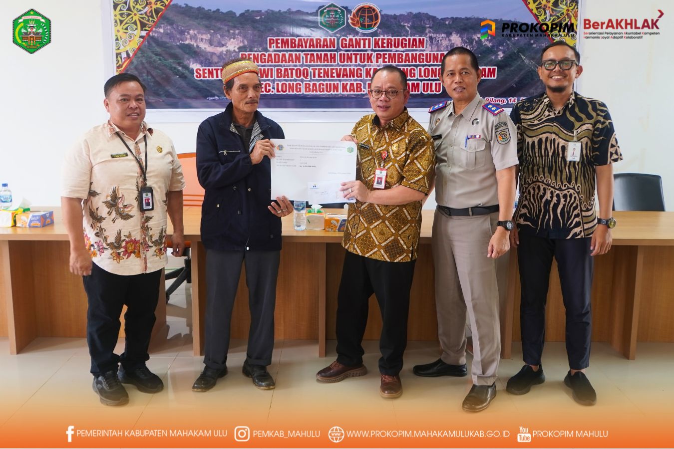 Press Release : UJOH BILANG – Mewakili Bupati Mahakam Ulu (Mahulu) Dr. Bonifasius Belawan Geh, S.H., M.E., Sekretaris Daerah (Sekda) Mahulu Dr. Stephanus Madang, S.Sos., M.M., menyerahkan pembayaran ganti kerugian pengadaan tanah seluas kurang lebih 39,2 hektar untuk pembangunan Sentra Pariwisata Batoq Tenevang, Kampung Long Melaham Kecamatan Long bagun yang berlangsung di Cafetaria Lt.2 Kantor Bupati Mahulu. Kamis (14/11/24)