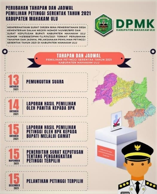 Sebelumnya, Pemerintah Kabupaten Mahakam Ulu (Mahulu) menetapkan penundaan pelaksanaan tahapan pemungutan suara Pemilihan Petinggi Kampung serentak tahun 2021 di wilayah itu. Pertimbangannya, karena saat itu, kasus covid-19 di Mahulu tinggi.