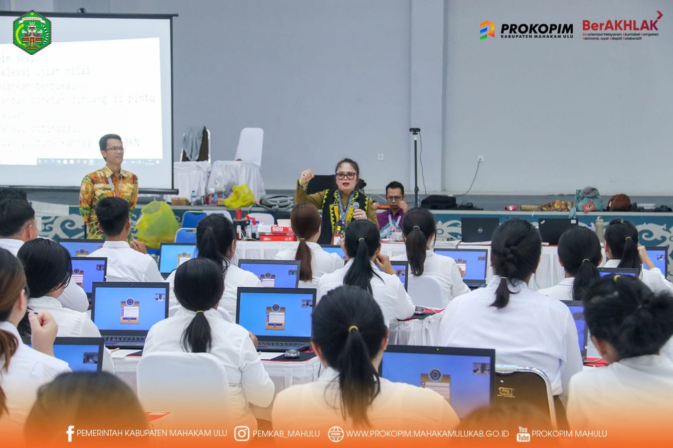 Kepala Badan Kepegawaian dan Pengembangan Sumber Daya Manusia (BKPSDM) Kabupaten Mahulu Wenefrida Kayang, S.Sos., M.Si., hadir di lokasi seleksi dan memberikan semangat kepada peserta.