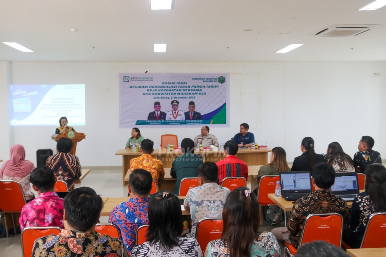 Press Release : Ujoh Bilang – Bupati Mahakam Ulu (Mahulu) Dr. Bonifasius Belawan Geh, S.H., M.E. dalam hal ini diwakili Asisten III Bidang Administrasi Umum Sekretariat Daerah (Setkab) Mahulu Kristina Tening, S.H., M.Si membuka Sosialisasi Aplikasi Rekonsiliasi Iuran Pemda (ARIP) Tahun 2024, yang dilaksanakan di Cafetaria Lt. 1 Kantor Bupati Mahulu. Kamis (21/11/2024)