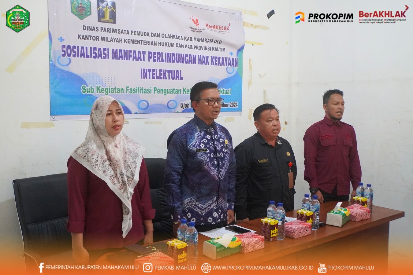 Kegiatan yang diinisiasi oleh Dinas Pariwisata Pemuda dan Olahraga (Disparpora) Kabupaten Mahulu ini dilakukan sehubungan dengan upaya untuk meningkatkan pemahaman dan kesadaran tentang pentingnya perlindungan HKl, dengan menghadirkan narasumber dari Bidang Pelayanan Hukum Kemenkumham Kanwil Kalimantan Timur Yusuf Padila, S.H., dan Mardiana Nurhayati, S.E.