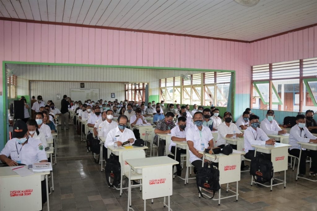 Wakil Bupati Mahakam Ulu, Drs. Yohanes Avun, M.Si pada saat membuka bimbingan teknis (Bimtek) Badan Permusyawaratan Kampung (BPK), penyelenggaran urusan Pemerintahan Kampung Tahun 2021, bagi Kecamatan Long Apari dan Long Pahangai.