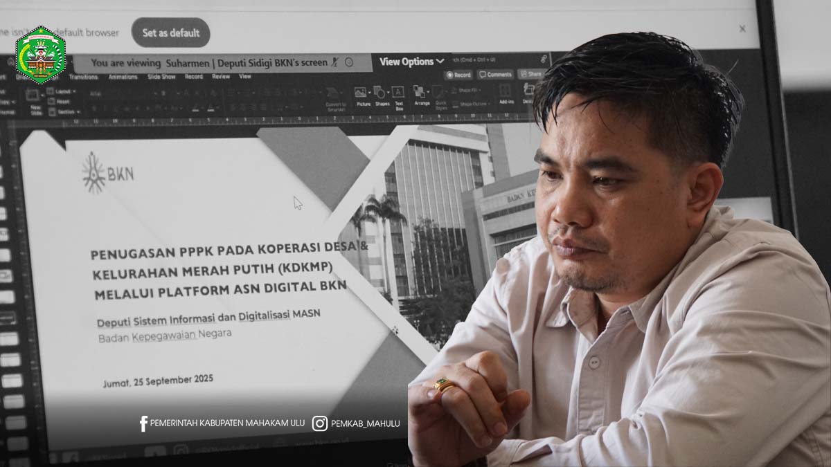 Samarinda – Bupati Mahakam Ulu (Mahulu), Angela Idang Belawan yang diwakili Wakil Bupati (Wabup) Mahulu, Suhuk, S.E., menghadiri kegiatan Sosialisasi secara virtual melalui Zoom Meeting yang diselenggarakan oleh Kementerian Pendayagunaan Aparatur Negara dan Reformasi Birokrasi (KemenPAN RB), bertempat di Kantor Penghubung Pemerintah Kabupaten Mahulu di Samarinda. Jumat (26/9/2025)