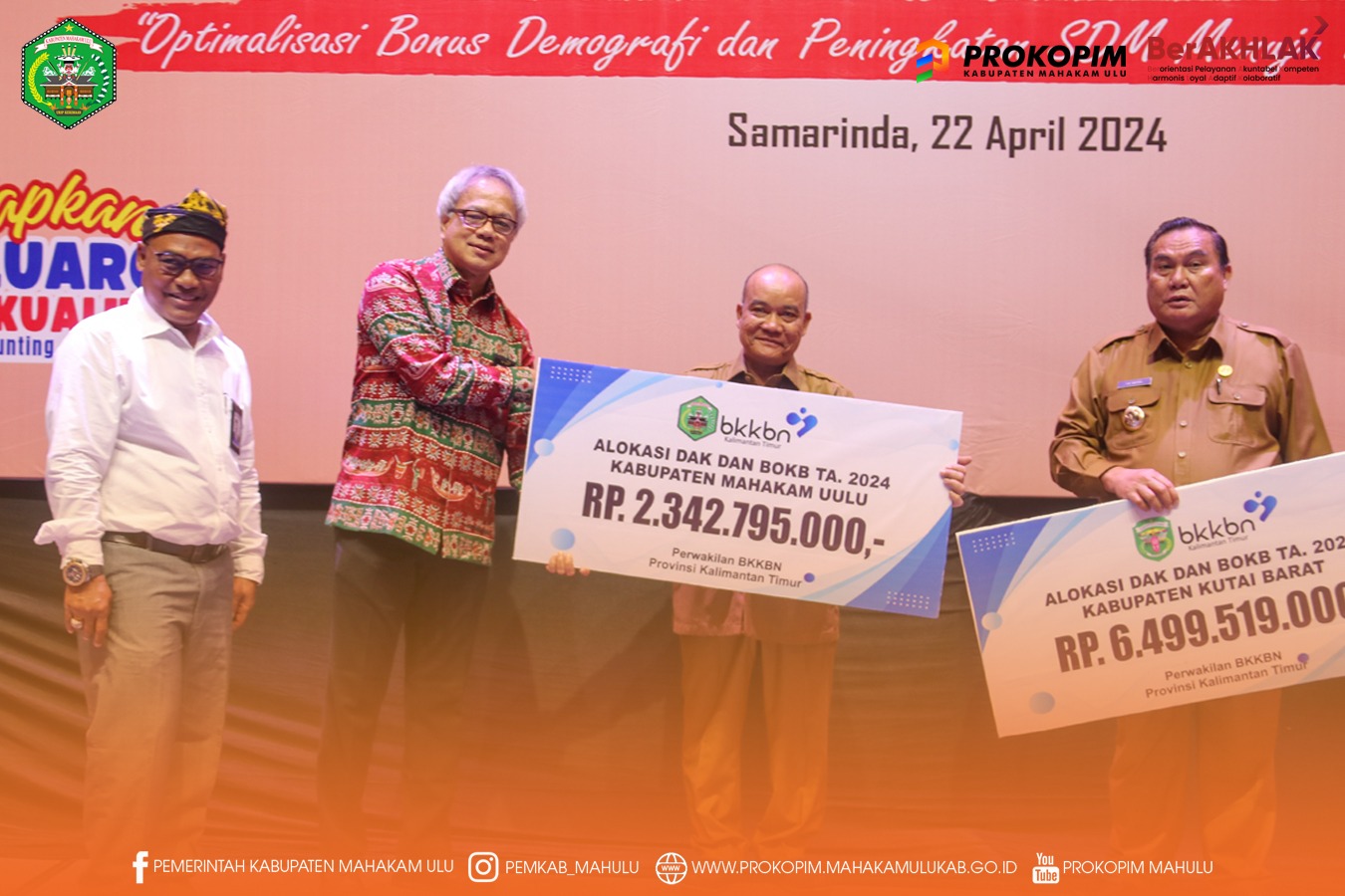 SAMARINDA – Pemerintah Kabupaten Mahakam Ulu ( Mahulu ) terima alokasi anggaran Dana Alokasi Khusus (DAK) Fisik Keluarga Berencana (KB) dan DAK non Fisik berupa Bantuan Operasional Keluarga Berencana (BOKB) Tahun Anggaran 2024 Sebesar Rp.2.342.795.000 Milyar dari Badan Kependudukan dan Keluarga Berencana Nasional (BKKBN) RI.
