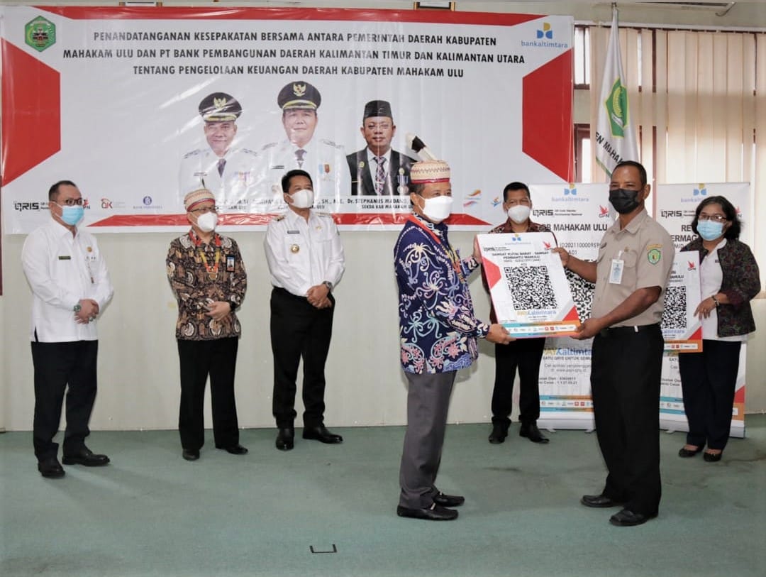 Usai penandatanganan dilanjutkan dengan serah terima aplikasi Q-RIS kepada Organisasi Perangkat Daerah (OPD) Teknis Dinas Kesehatan, Dinas Perhubungan, Samsat oleh Bupati Bonifasius Belawan Geh, SH.,ME dan Direktur Utama PT. BPD Kaltimtara Muhammad Yamin.