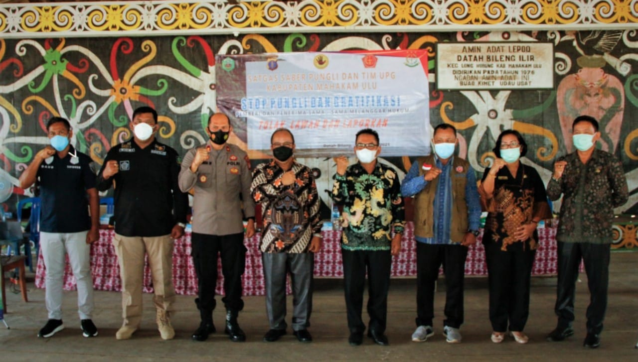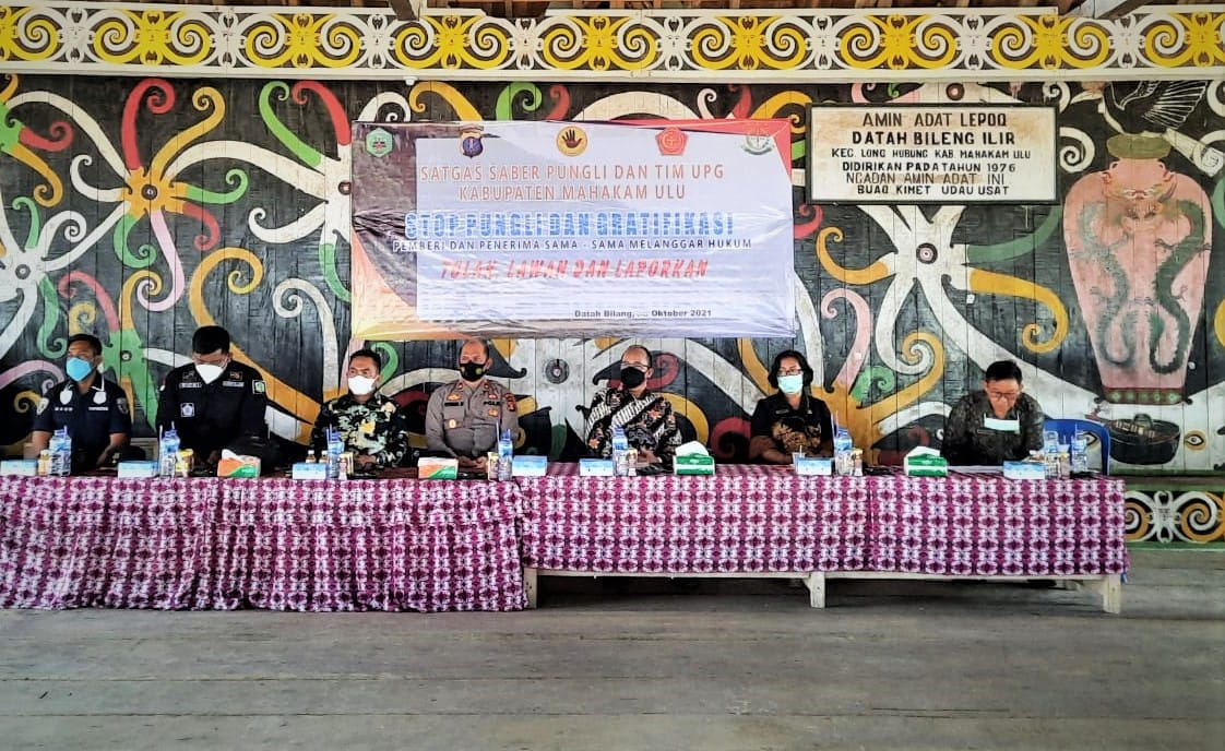 UJOH BILANG – Pemerintah Kabupaten (Pemkab) Mahakam Ulu (Mahulu), melalui  Inspektorat Mahulu menggelar Sosialisasi Satuan Berantas Pungutan Liar (Saber Pungli) dan Gratifikasi, Kegiatan yang dilaksanakan di Lamin Adat Lepoq Datah Bilang Ilir, Kecamatan Long Hubung, Kamis (28/10/21)